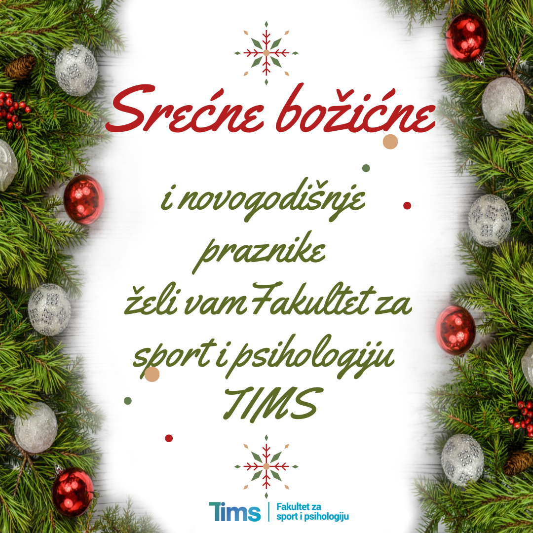 Zbog novogodišnjih i božićnih praznika, Fakultet za sport i psihologiju TIMS neće raditi od 31.12.2025. do 7.01.2026. godine. Prvi radni dan je 8.januar.